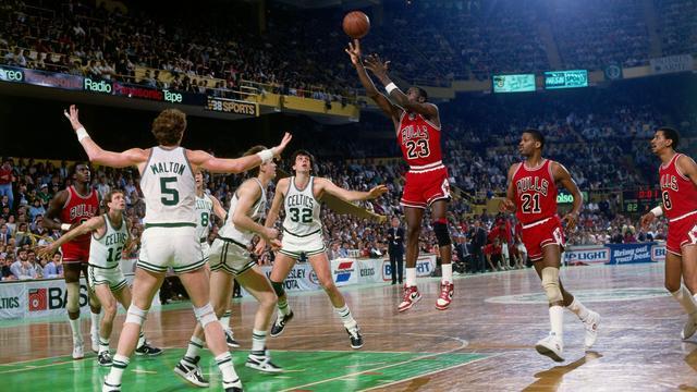提起NBA季后賽的個人單場得分天花板,老球迷的腦海里肯定會蹦出一個經(jīng)典畫面:1986年,還是“二年級菜鳥”的邁克爾·喬丹在波士頓北岸花園球館,頂著擁有伯德、麥克海爾的“無敵綠軍”,全場狂砍63分。賽后,連“逼王之王”拉里·伯德都忍不住爆出那句千古名言:“今天是上帝穿著23號球衣在打球?!?/p>